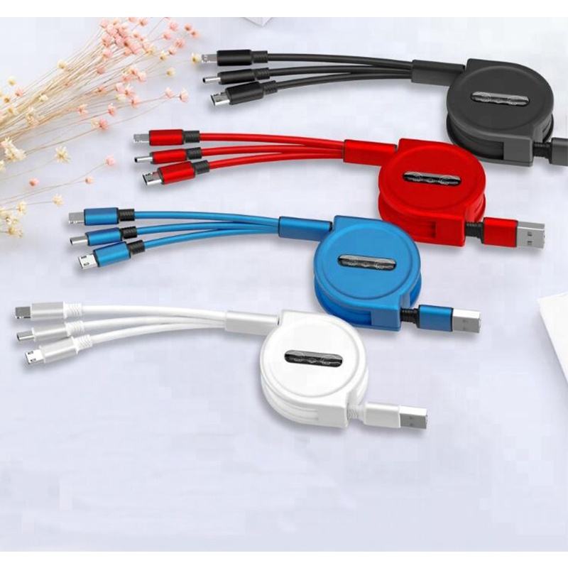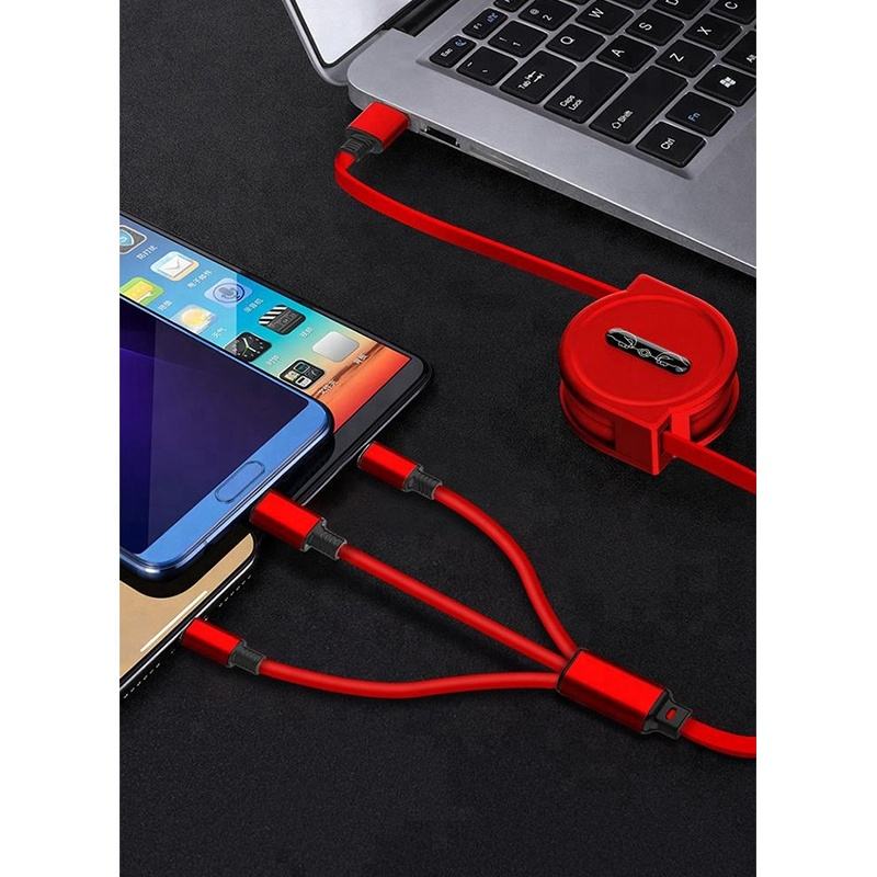 OEM Universal 3 in 1 fast charging cable flat data cable stretch cable USB for Iphone/type C/Micro