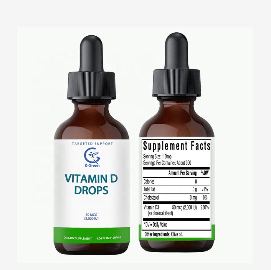 OEM gocce di vitamina D per bambini e adulti puro liquido D3 sistema immunitario ossa e denti che allattano mamme bambini e adulti