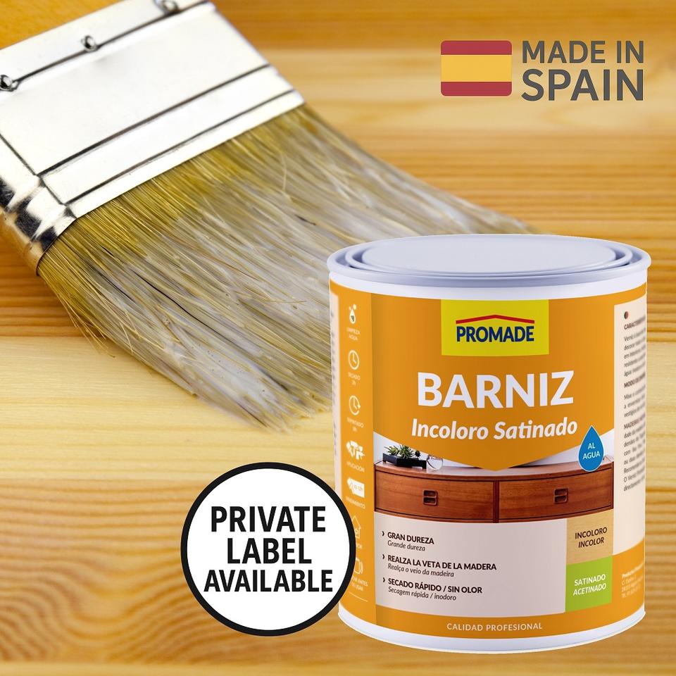 Vernice per Legno da Interni a Base d'Acqua OEM, Finitura Satinata Trasparente, Basso Odore, Resistente ai Graffi, Etichetta Privata Disponibile, 375 ml
