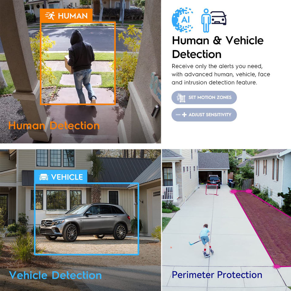 Modalità visione notturna: Tre modalità di visione notturna consentono un cambio flessibile per adattarsi a diverse condizioni di illuminazione, garantendo una sorveglianza continua e affidabile anche in bassa luce.