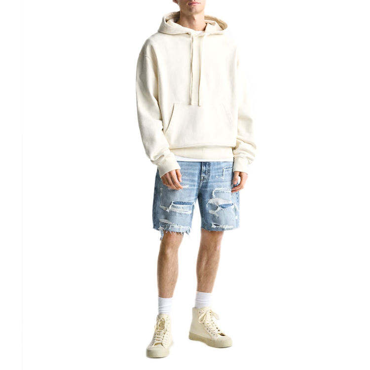 OEM all'ingrosso blu strappati da uomo pantaloncini di Jeans strappati Casual con lavaggio acido pantaloncini di Jeans da uomo