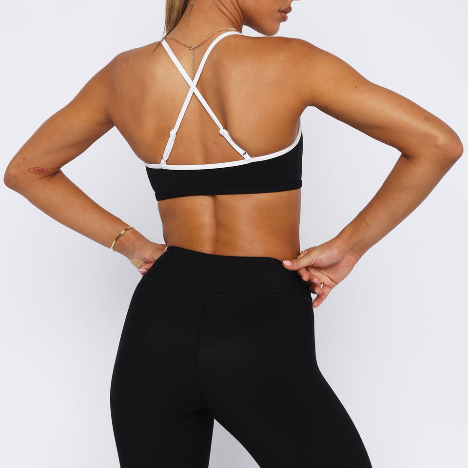 OEM Women Sportswear Cross Back Yoga Bra Black V-neck Adjustable Thin Straps Sports Bra