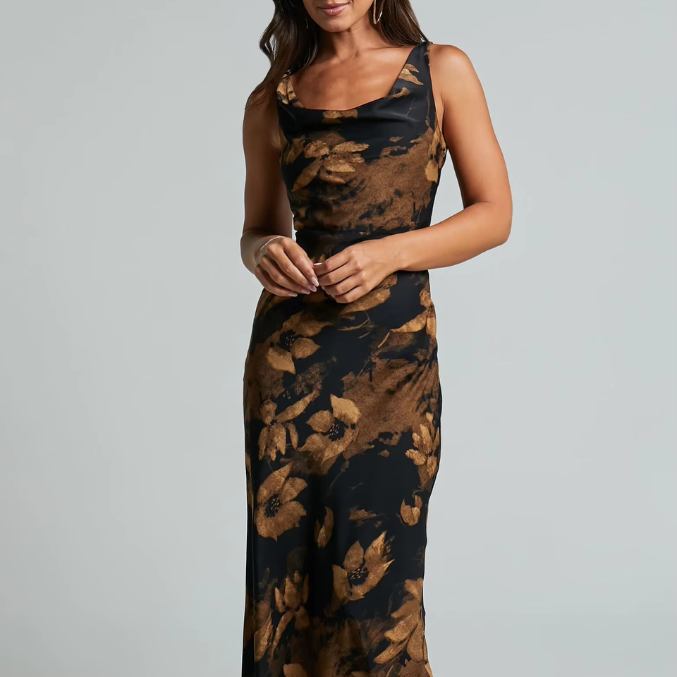 OEM Women's Clothing Manufacturer Offers Elegant Trendy Floral Long Dresses Custom-Made Black Sleeveless Design Wholesale