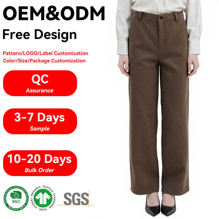 Pantaloni a Gamba Larga Classici da Donna OEM a Vita Alta in 100% Lana Fine con Motivo Pied-de-Poule per l'Inizio Primavera
