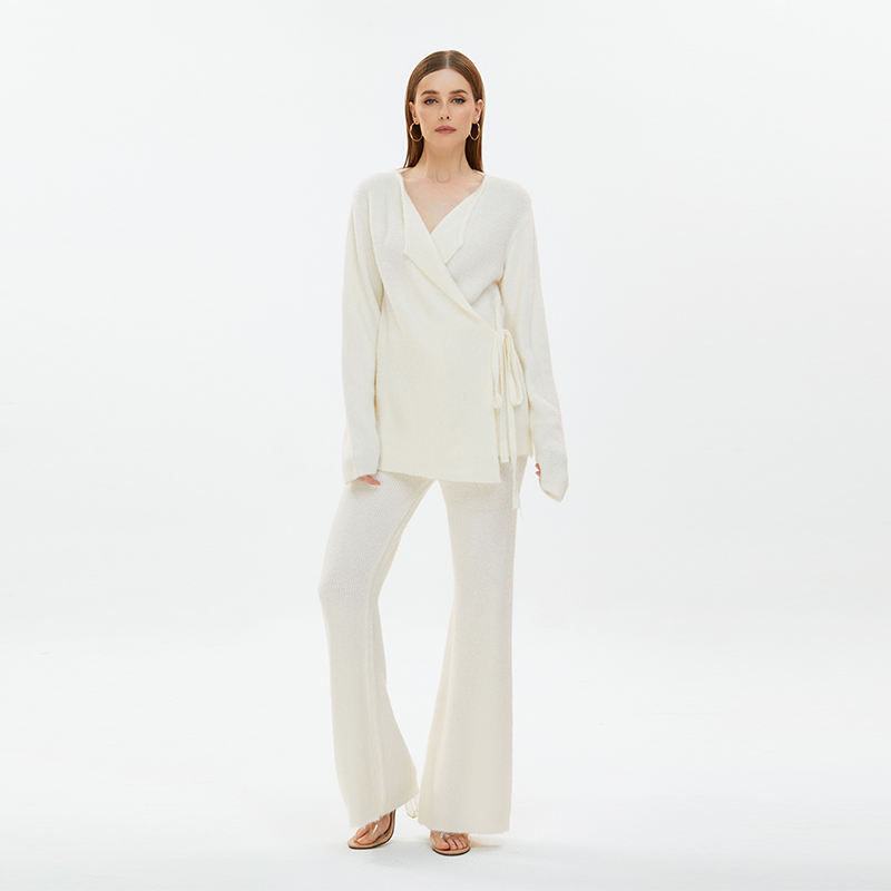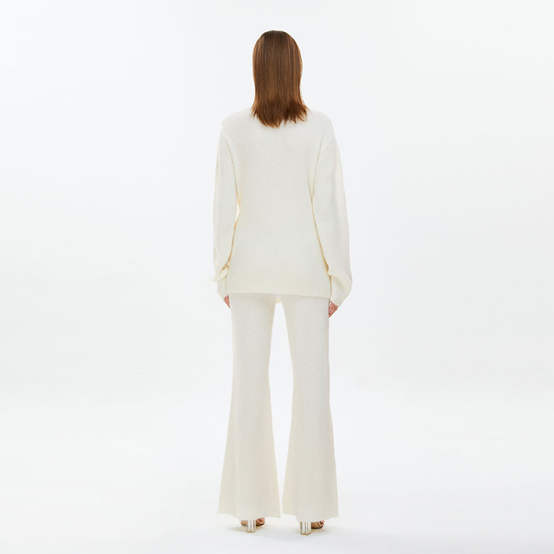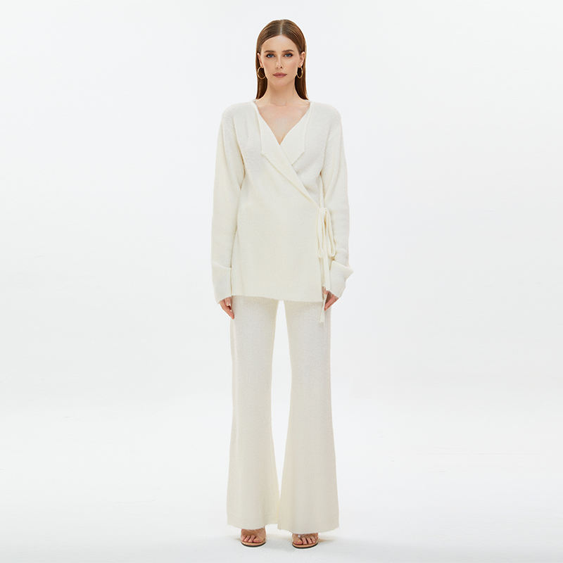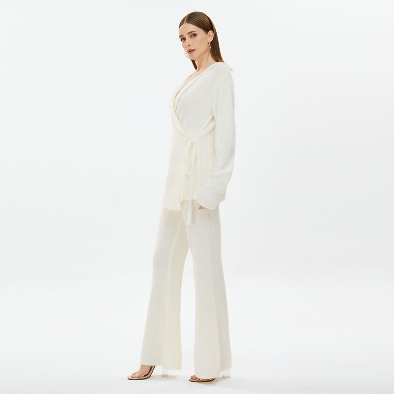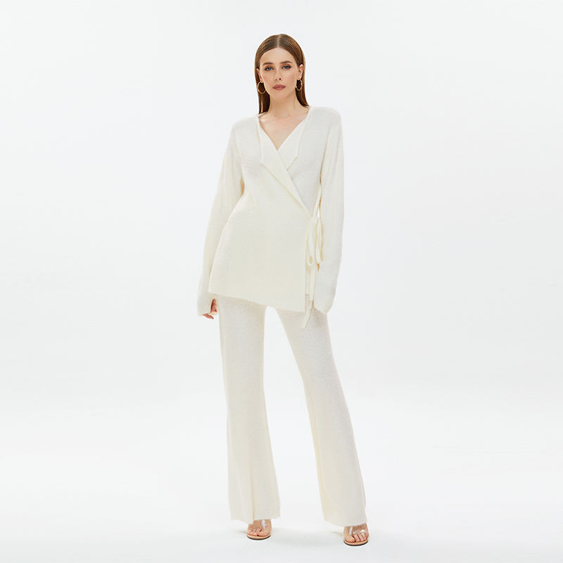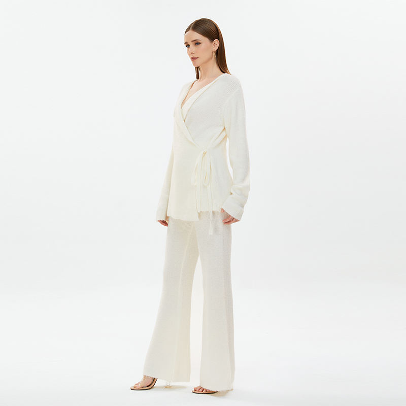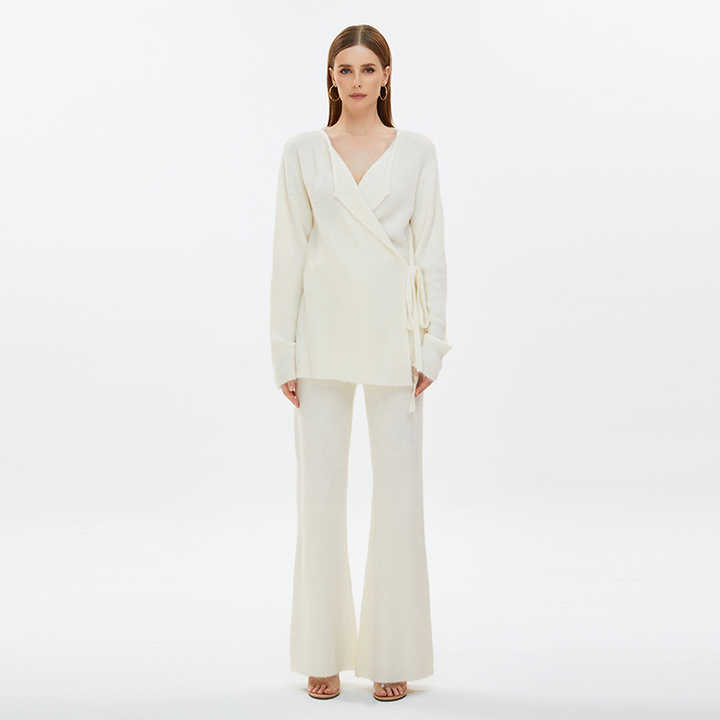 OEM maglione da donna Set due pezzi Cardigan oversize in tessuto a coste ricamato con maniche lunghe tinta unita