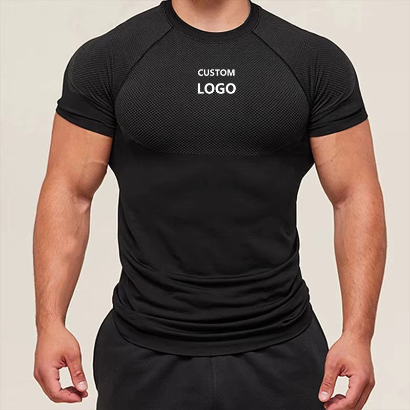 OEM Workout Sports Training Activewear Short Sleeve Fitness Breathable Compression High Elastic Gym Running Top T Shirt for Men