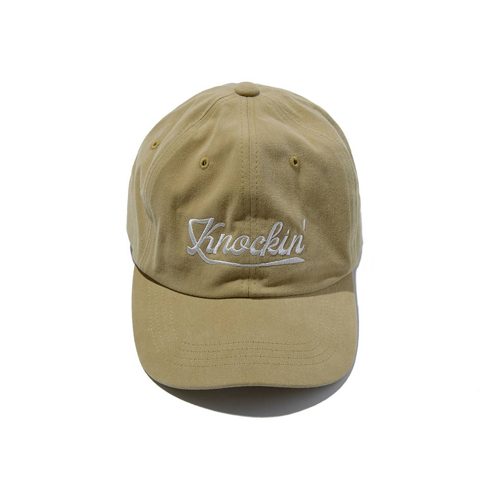 Cappellino da Baseball OGARP KNOCKIN LOGO B.B Beige con Stampa Floccata, 100% Cotone Canvas Lavato, Multi-Pannello, Casual, Quattro Stagioni, Logo Frontale