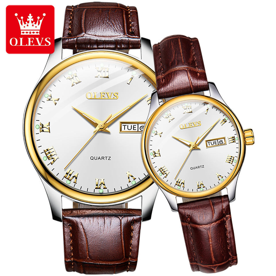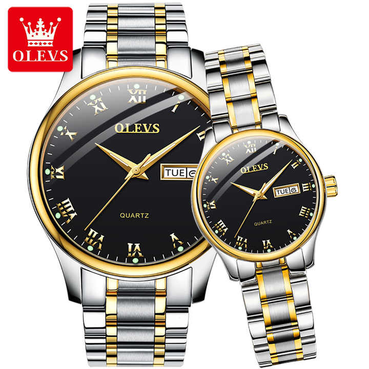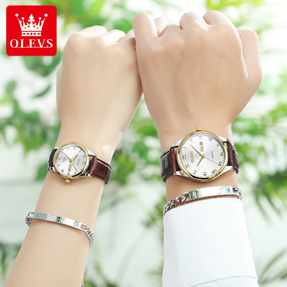 OLEVS 5568 Luxury Lovers Stainless Steel Quartz Watch Men Couples Watches Automatic Week Calendar Wristwatch Reloj Mujer