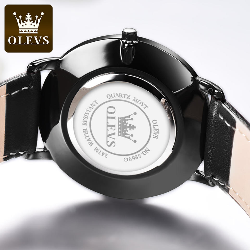 Orologio da Polso per Coppia OLEVS 5869 Marchio di Lusso in Vera Pelle Impermeabile al Quarzo per Uomo e Donna