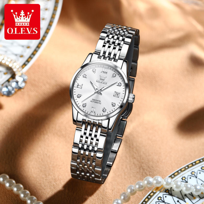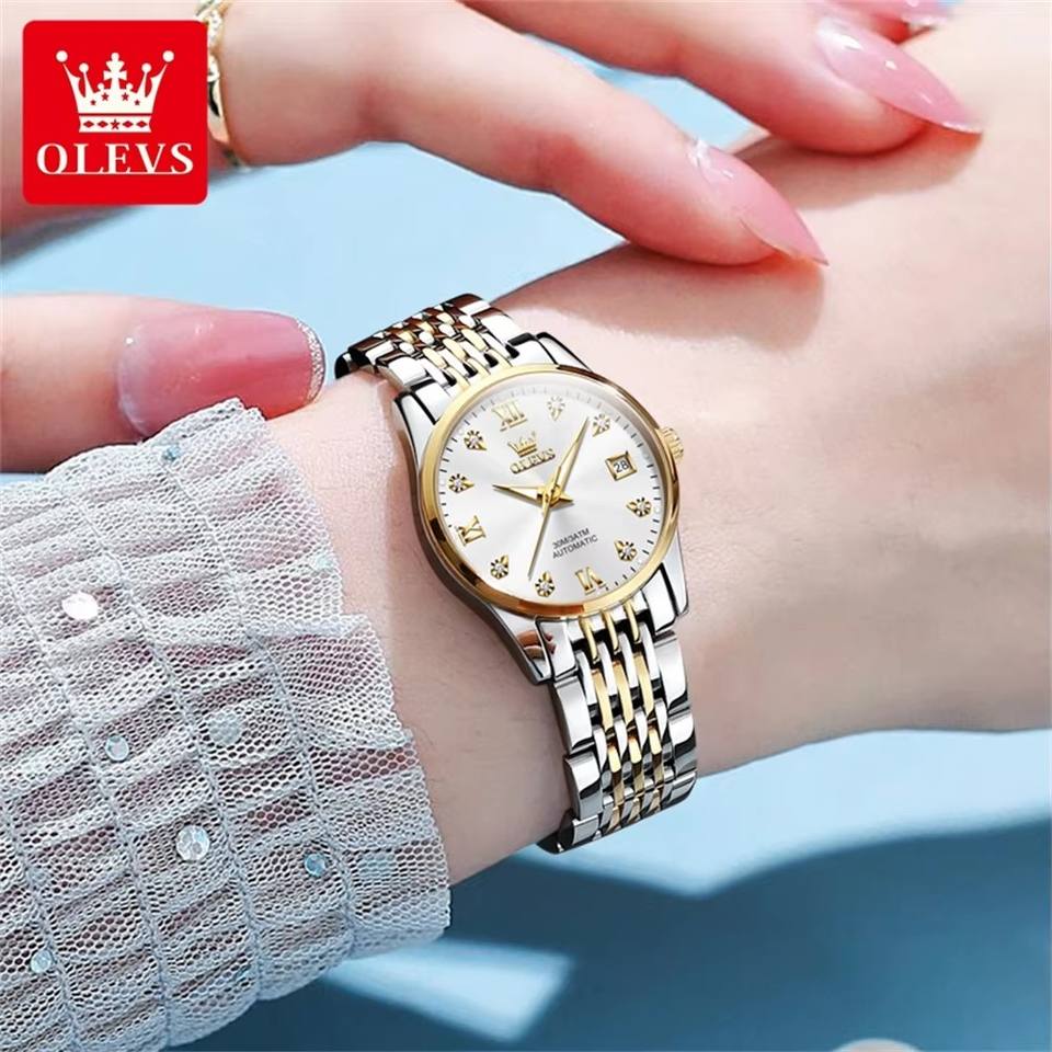 Orologio meccanico OLEVS quadrante 6673 diamante per le donne semplice moda calendario classico orologio automatico da donna orologio da donna