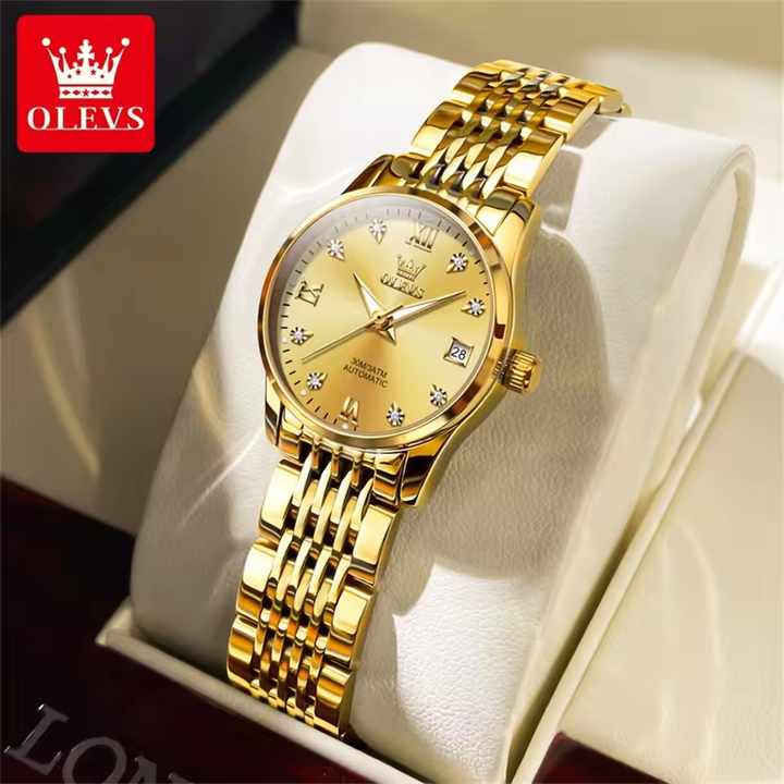 OLEVS 6673 diamante quadrante meccanico da donna semplice moda calendario classico da donna orologio automatico di lusso da donna orologi da donna