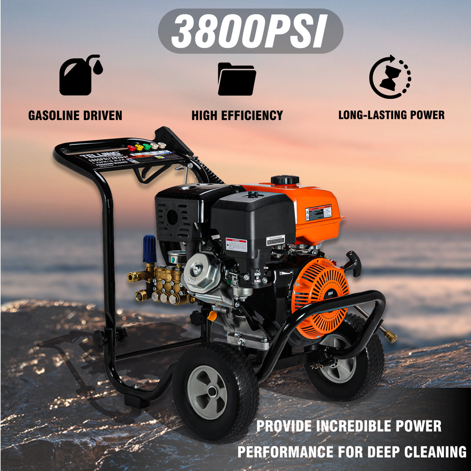 Idropulitrice a Benzina OME 3800psi/262bar con Pompa Triplex, 4 Ugelli, Motore 7hp per Uso Domestico