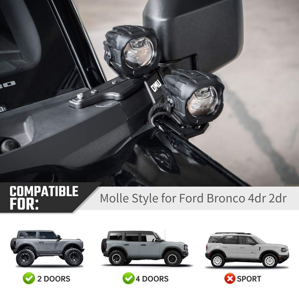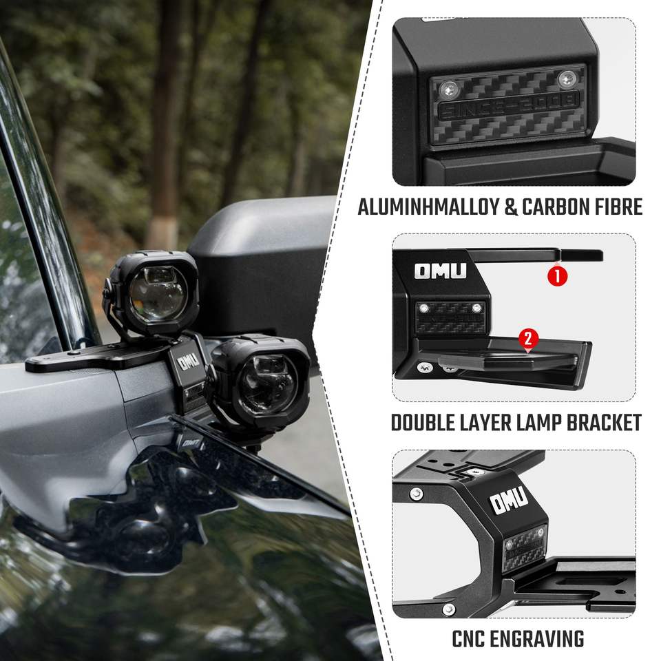 Sistema di Illuminazione OMU Serie Genesis 2021+ per Ford Bronco, Supporto in Alluminio per Montaggio su Montante A, Illuminazione Fuoristrada