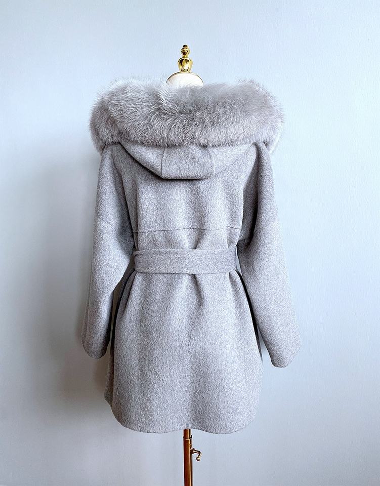 ON SALE QIUCHEN- QC21004 Women Fox Fur Collar Fur Pockets Blend Wool Coat Black