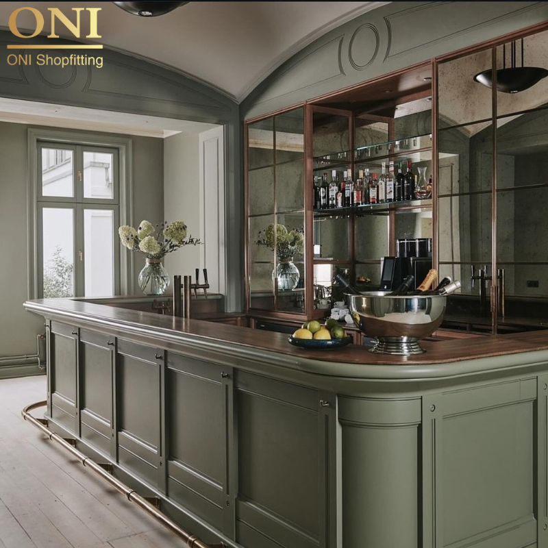 ONI Shopfitting verde Vintage Custom mobili Bar banconi Bar per Pub o negozio di visualizzazione Vintage Design per la vendita