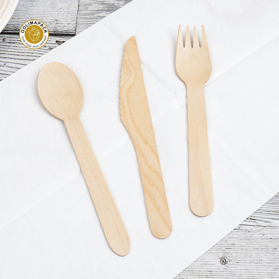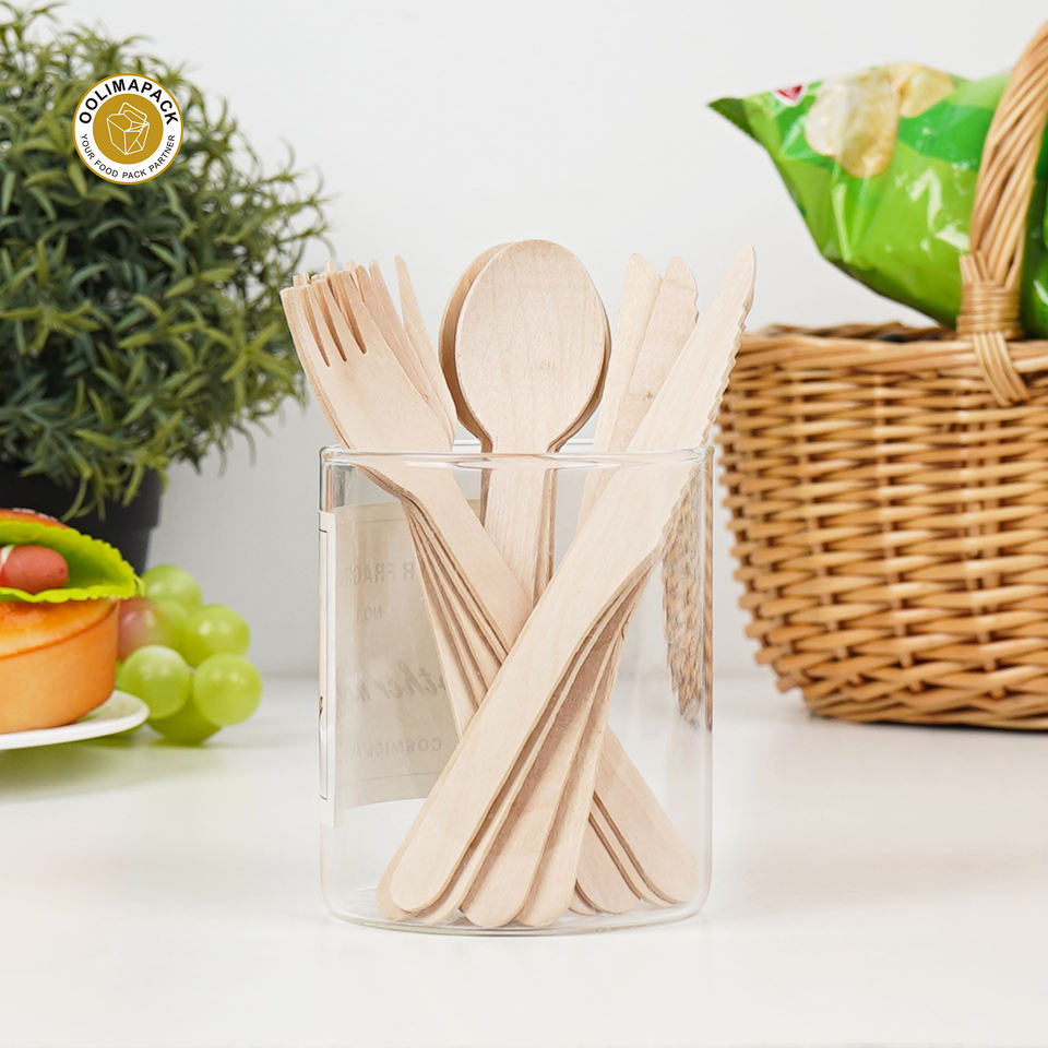 OOLIMA Biodegradable Wooden Cutlery Spoon Small Wooden Spoons Wood Cutlery Disposable Knife Fork Spoon Outdoor Disposable Cutler