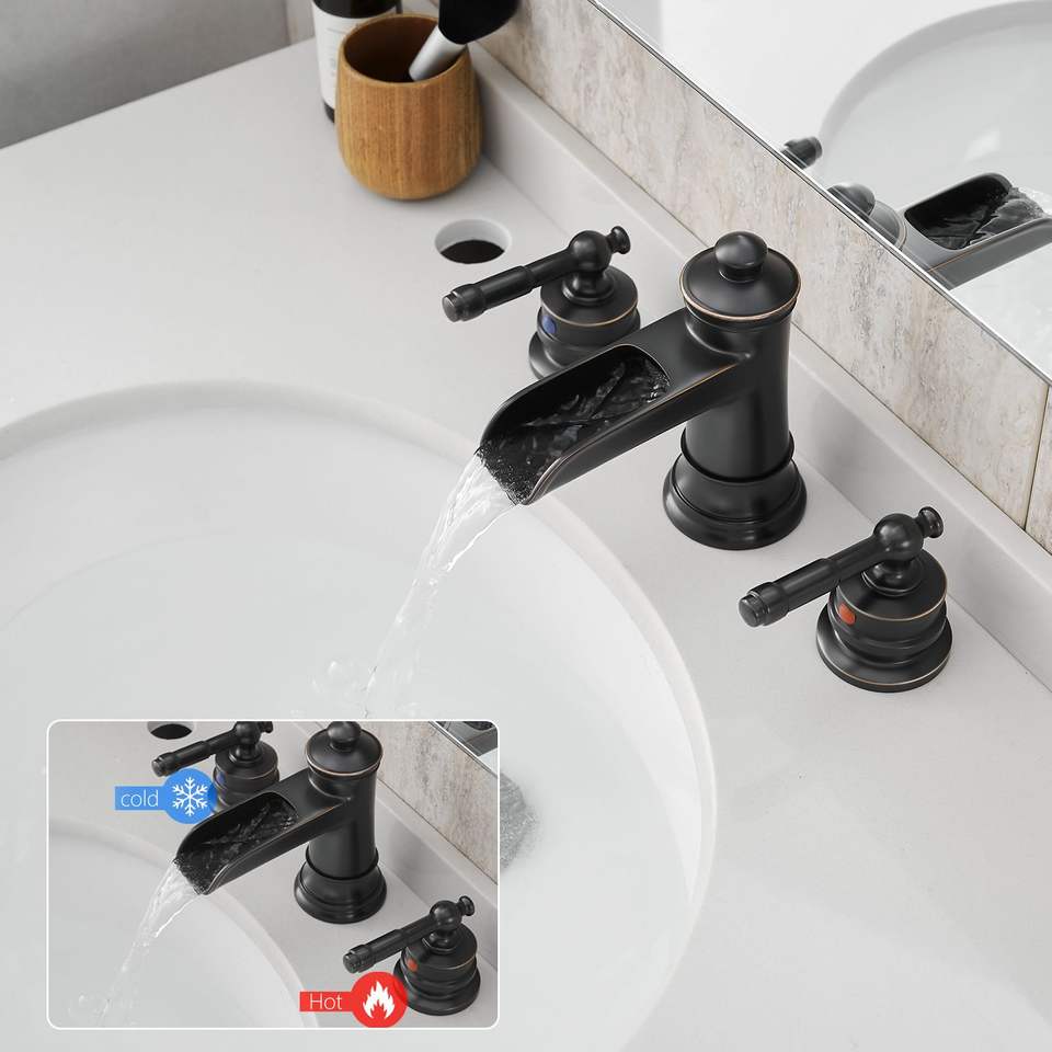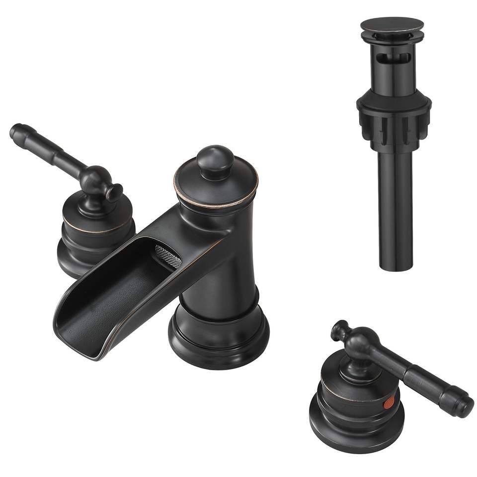 Rubinetto da Bagno ORB a 3 Fori con Scarico a Scomparsa, Maniglia a Doppia Leva, 8 Pollici, per Lavabo e Doccia