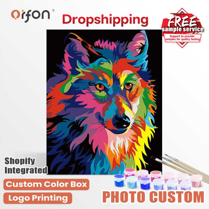 ORFON Dropshipping Kit Pittura a Numeri Ritratto di Lupo Vibrante - Arte Pop Colorata del Lupo per Decorazione Casa Fai-da-Te