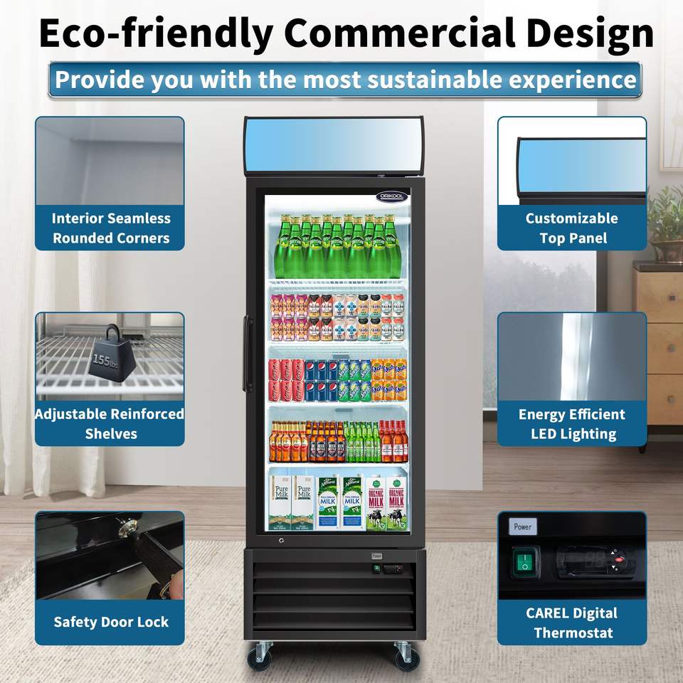 ORIKOOL Frigorifero Commerciale con Porta in Vetro da 19,3 Piedi Cubi, Espositore Refrigerato con Porta a Battente, Congelatore e Frigorifero per Negozi