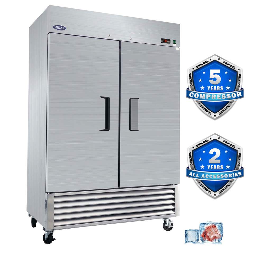 Congelatore Commerciale ORIKOOL 54 Pollici, 49 Cu.ft, 2 Porte Solide, Congelatore Verticale in Acciaio Inox Approvato ETL