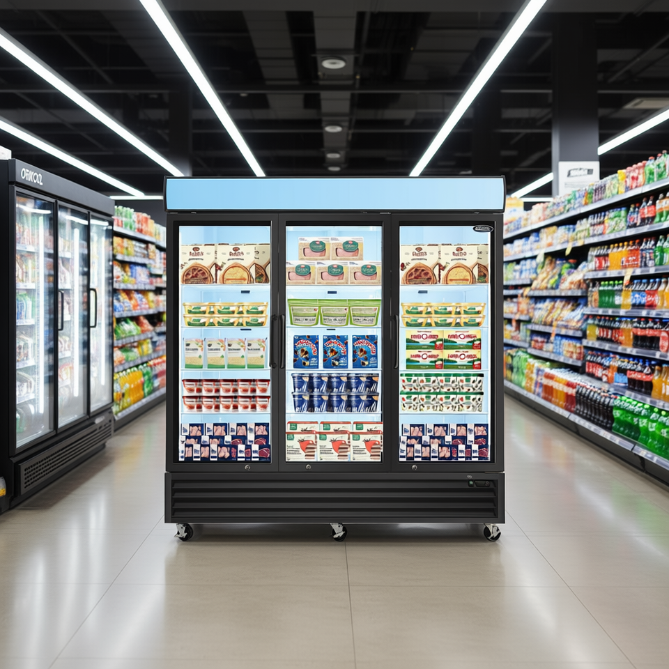 Orikoool Commercial 70 Cu Ft Upright Freezer Glass Door Merchandiser Swing Door Reach In Display Fridge Single Temperature Auto