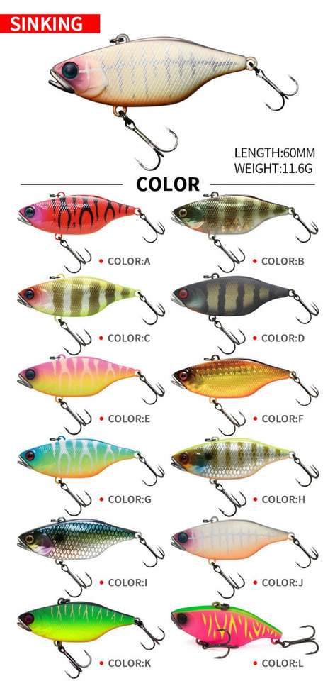 ORJD 6cm 11g Lipless Crankbait Fishing Lures VIB Sinking Vibe Crank Baits Swim Baits Minnow for Bass Trout