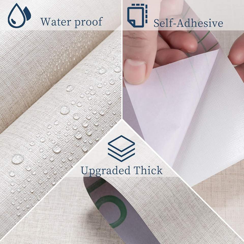 Carta da Parati Adesiva Impermeabile Beige ORON DECO per Camera da Letto, Rivestimento Murale in Tessuto Lino e Vinile