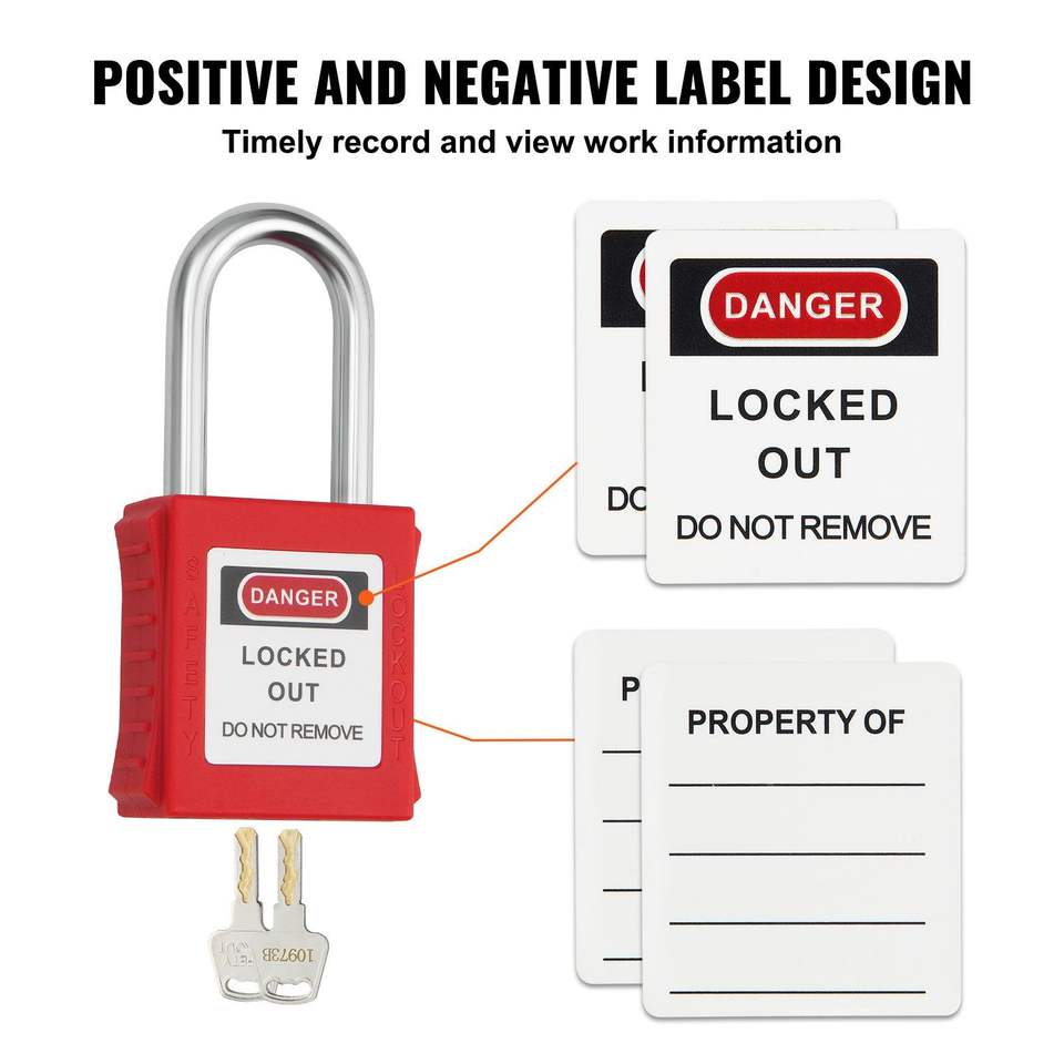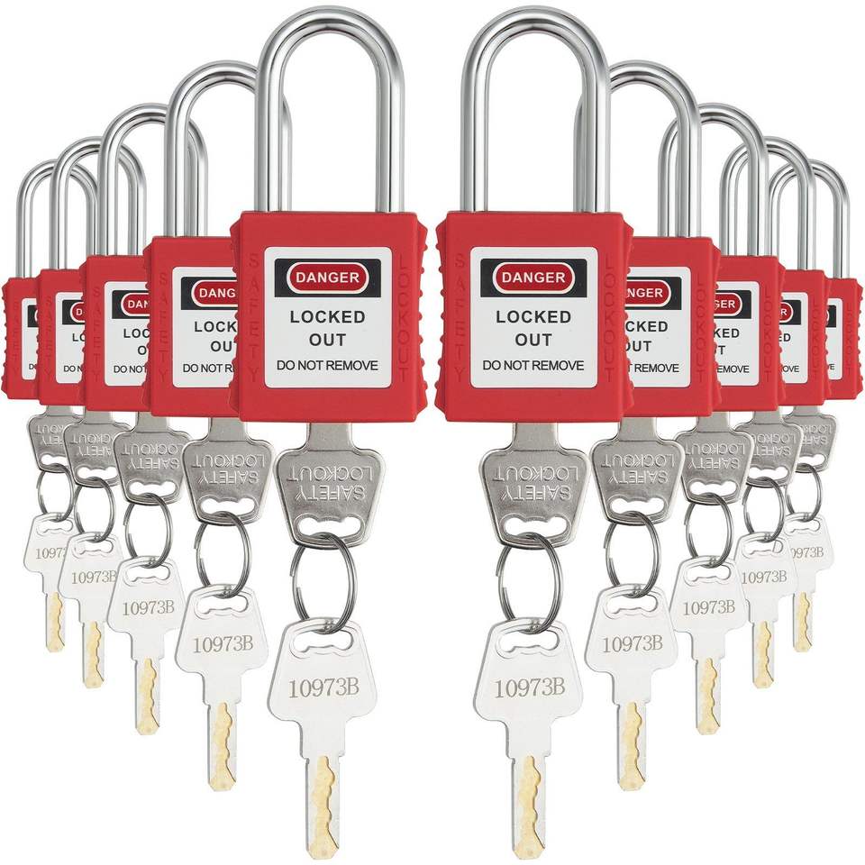 Set di 10 Lucchetti di Sicurezza Rossi Conformi OSHA con 2 Chiavi per Lucchetto, Misura delle Precauzioni di Sicurezza Lockout Tagout