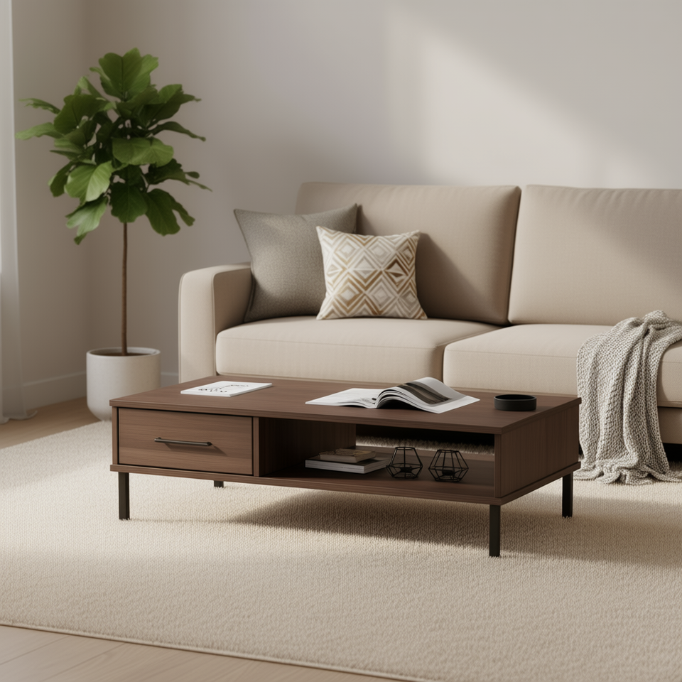 Oslo Brown Solid Pine Wood Coffee Table With Metal Legs Modern Scandinavian Living Room Furniture