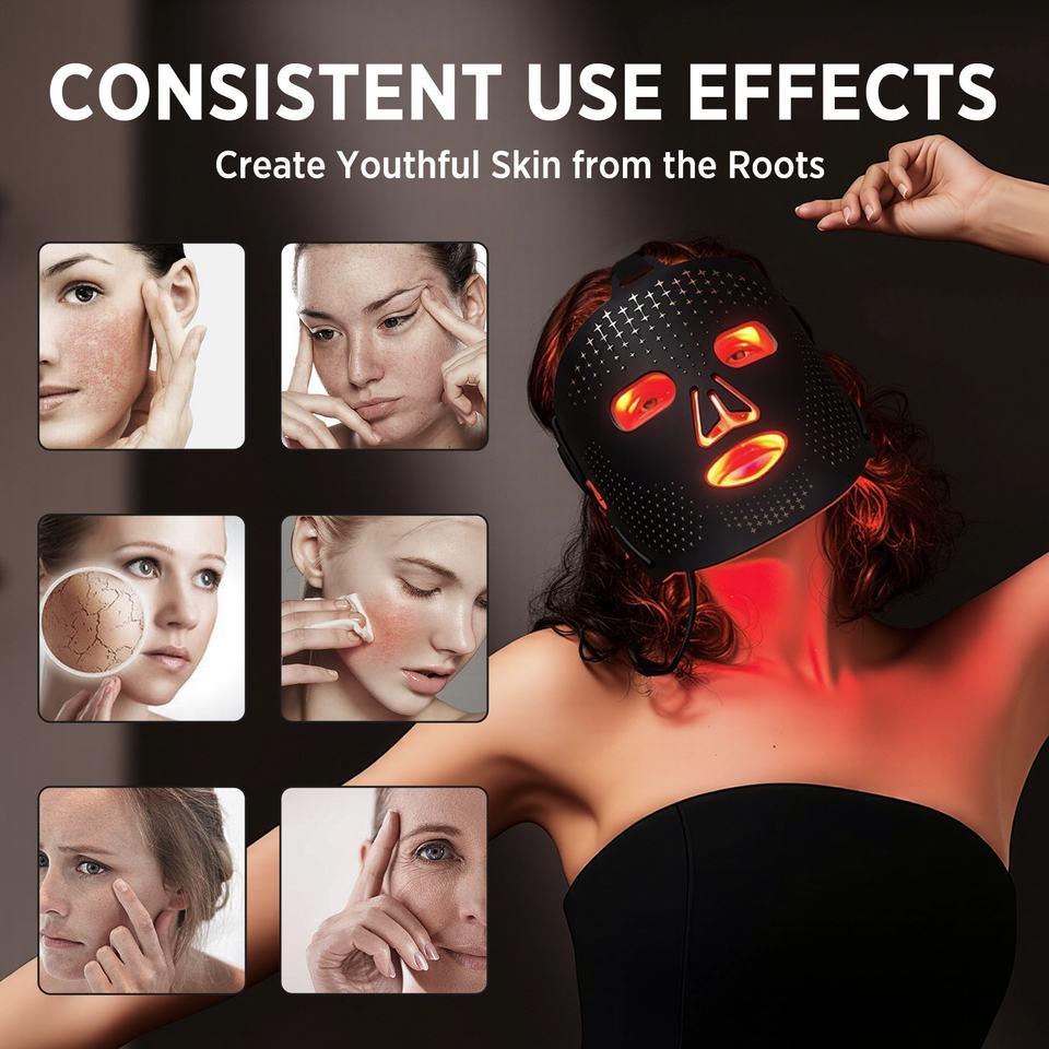 Nuova Maschera Facciale OSTO in Silicone con 4 Colori, Terapia a Luce LED Blu, Rossa e Infrarossa per Viso e Collo
