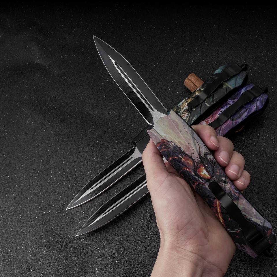 Coltello Pieghevole Automatico OTF per Autodifesa con Lama a Molla e Impugnatura per Campeggio