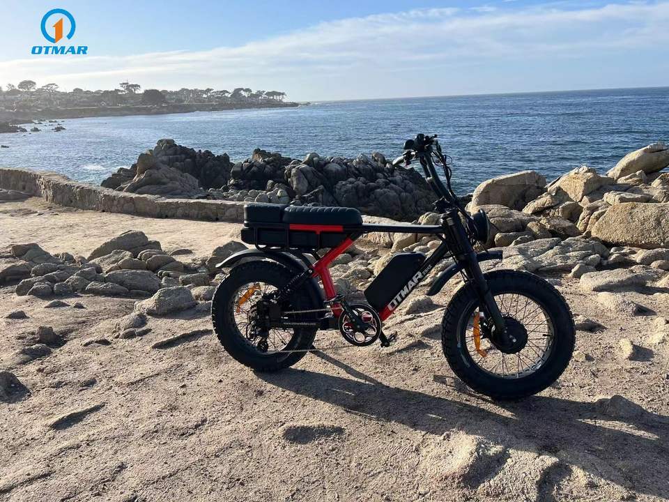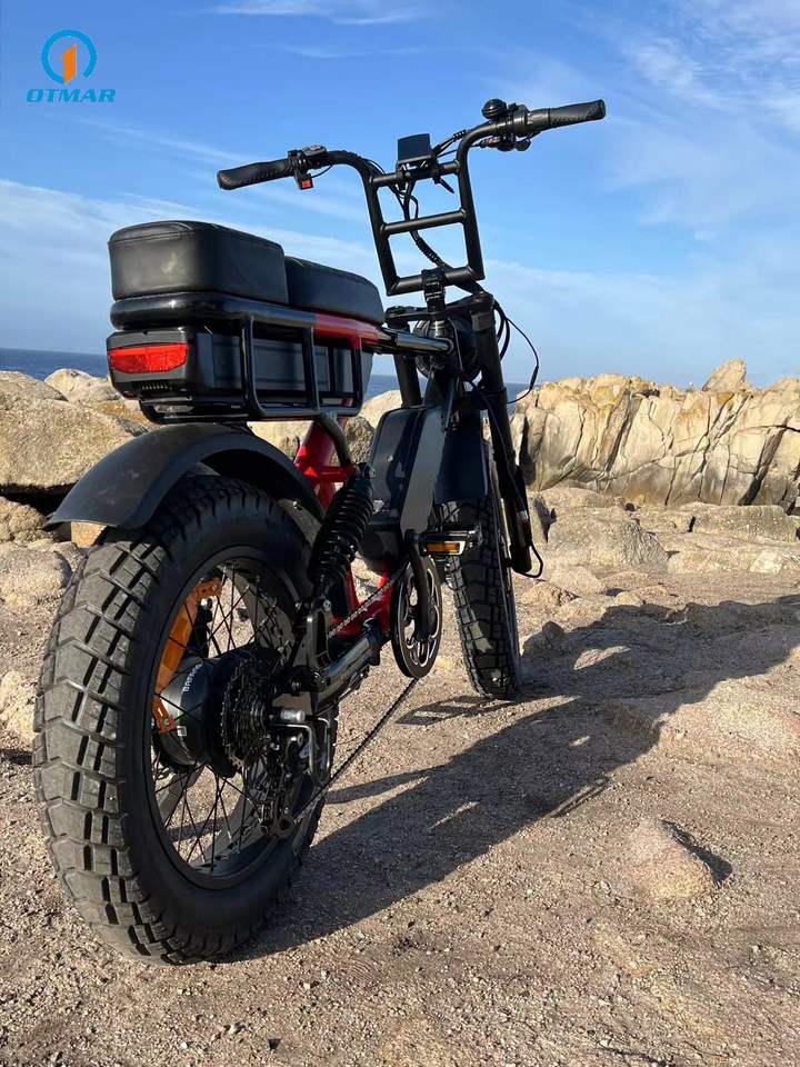 Bicicletta Elettrica OTM Retro con Motore Posteriore, Doppia Batteria, Sospensione Completa, Batteria al Litio 20Ah, 1000W, Stile Ciclomotore Veloce