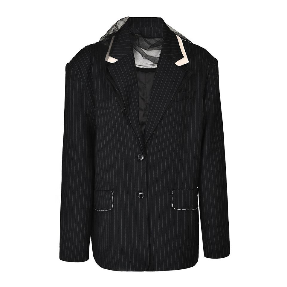 OUDINA autunno Design personalizzato con giuntura a righe in rete giacche Blazer da donna eleganti Blazer da donna