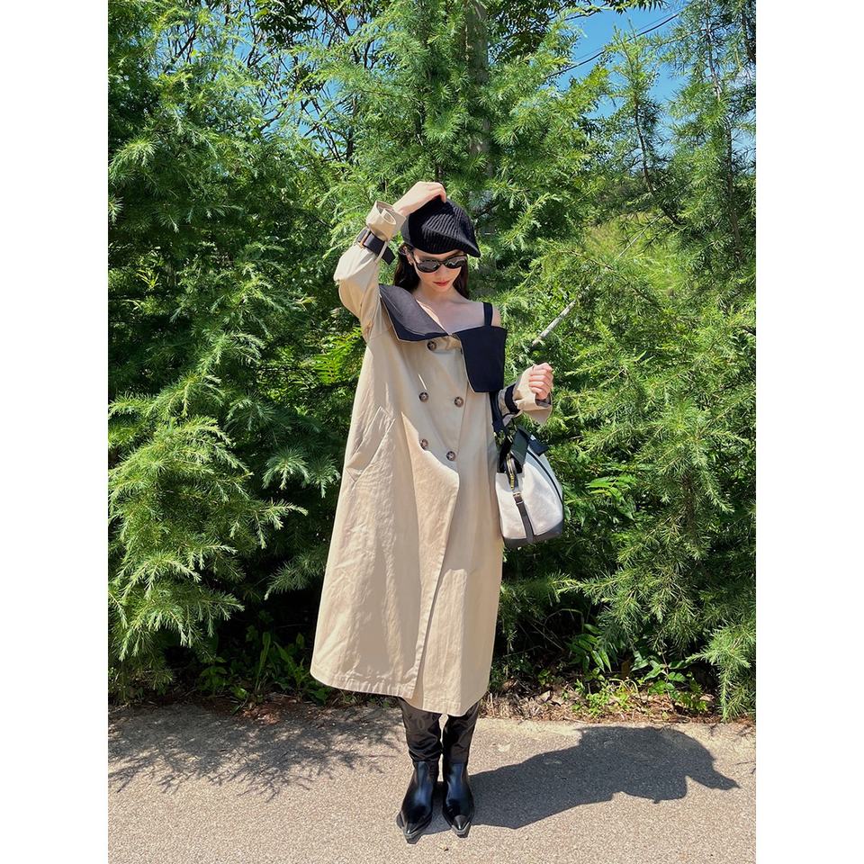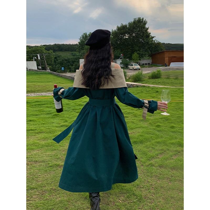 OUDINA Fashion allentato doppio petto cintura vita alta una spalla cava elegante Trench abiti lunghi donna