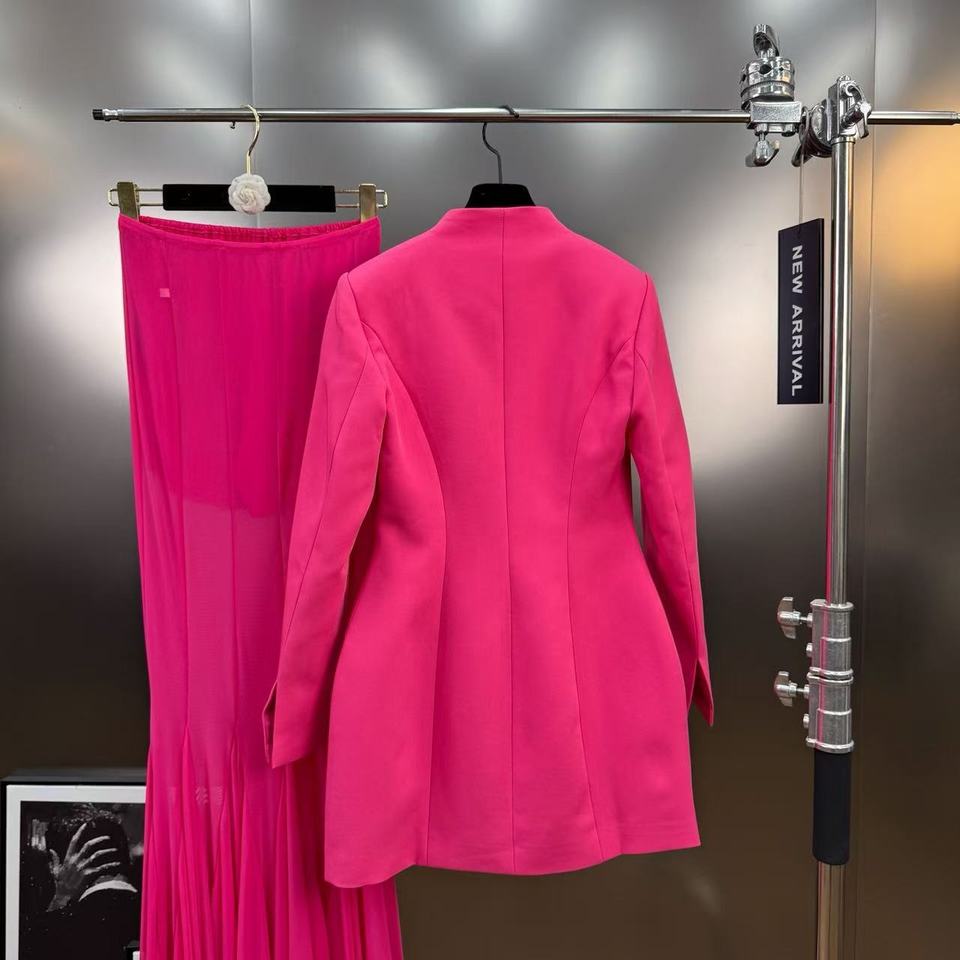 OUDINA hotseller nuovo collo a V maniche lunghe con bottone vita elegante Blazer Tulle gonne da donna lungo due pezzi Set gonna tailleur