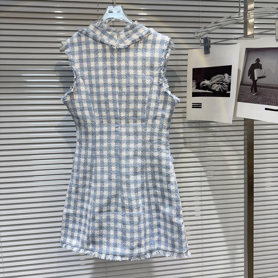 OUDINA Trendy Fashion New Sleeveless Blue Tweed Knitting Washed Straight Jean Denim Dress Women