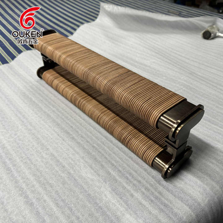 OUKEN di lusso Premium maniglia della porta in pelle intrecciata e motivo casuale antico rame maniglia della porta