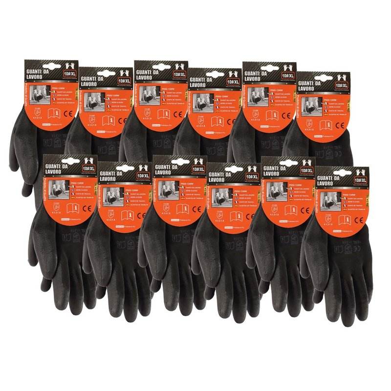 *OUTLET* 12 Pairs Black Work Gloves Size XL 10 with Latex Coating - Home & Garden / DIY