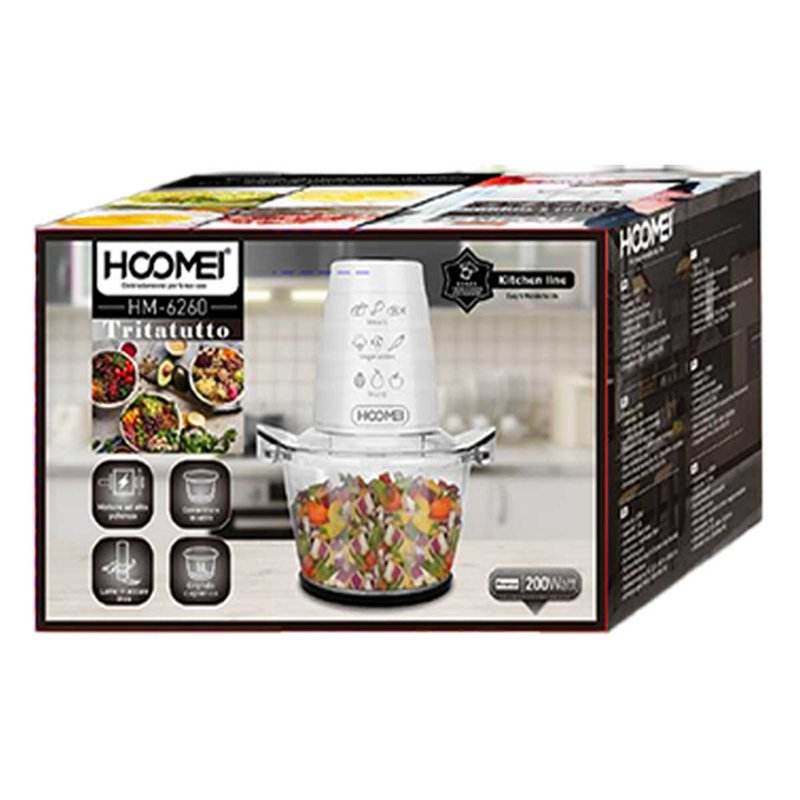 *OUTLET* 200W Stainless Steel Double Blade Electric Food Chopper with Tempered Glass Tray, 1L Capacity, White -
