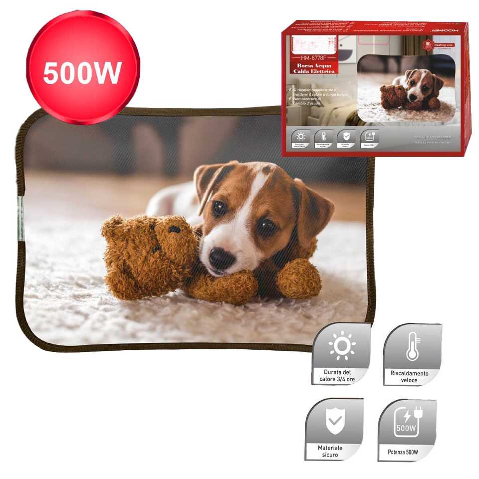 *OUTLET* Electric Hot Water Bottle 400W Keeps Warm for 6 Hours Fast Charging and Soft Fabric with Cute Dog Design -