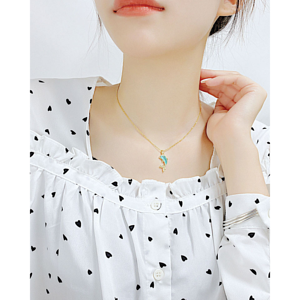 OYA Special Design placcato oro Blue Stone Shark Shape collana a catena moda donna in acciaio inossidabile per bambini