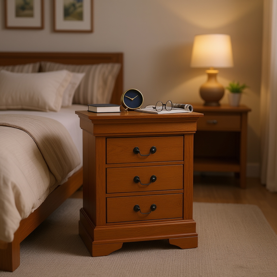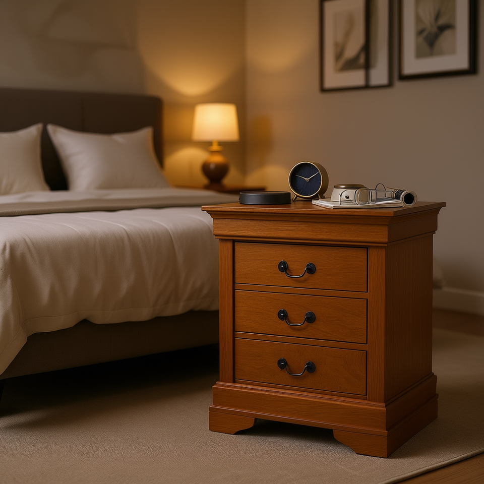 Comodino in Quercia con 3 Cassetti, Design Tradizionale, Arredamento per Camera da Letto
