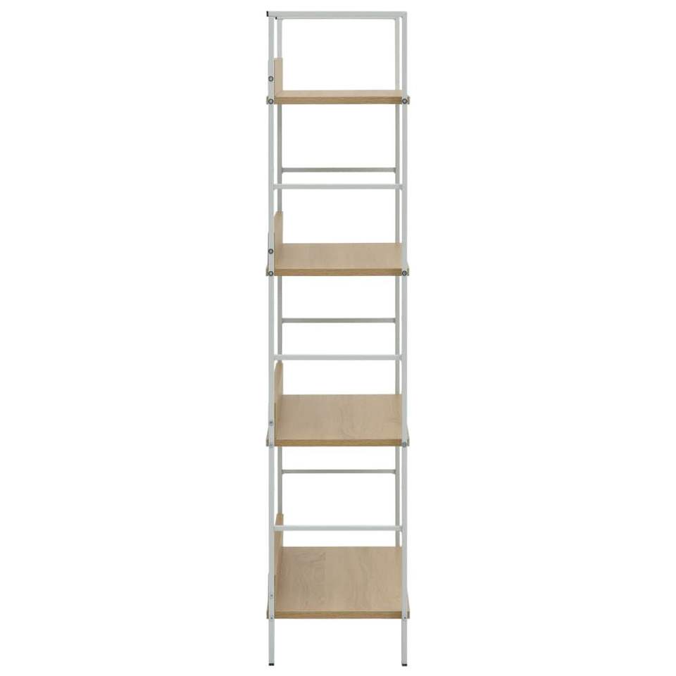 Libreria in Legno Ingegnerizzato di Quercia e Bianco con Ripiani Eleganti in Acciaio di Medie Dimensioni per Uso Domestico e Ufficio