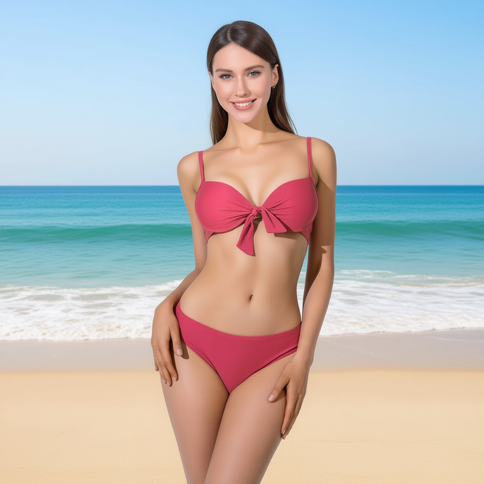 Set Bikini HDJ Rosa Taglia 40 42 44 46, Costume da Bagno a Fascia con Nodo Frontale, Set Due Pezzi Elasticizzato Tinta Unita per Donne