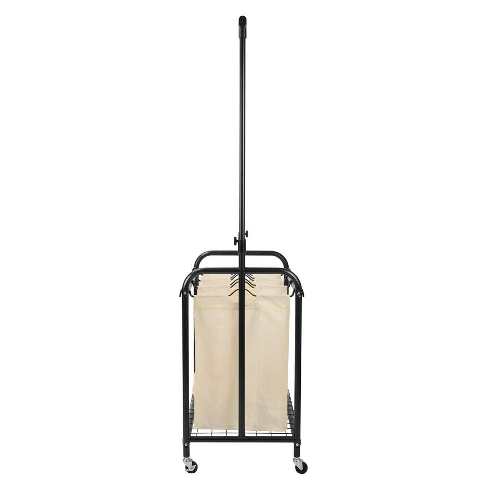 Oceanstar Cesto Portabiancheria a 3 Scomparti con Ruote, Barra Appendiabiti Regolabile, Bianco, Cesti Pieghevoli