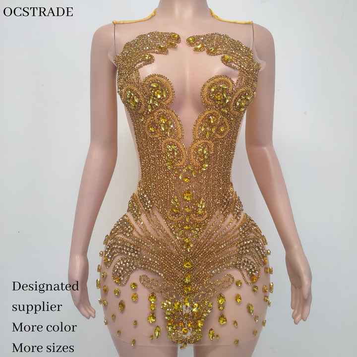 Ocstrade Custom Women Luxury Party Rhinestone Mini Dress Sexy Bodycon Transparent Diamond Dress Birthday Rhinestone Club Dress
