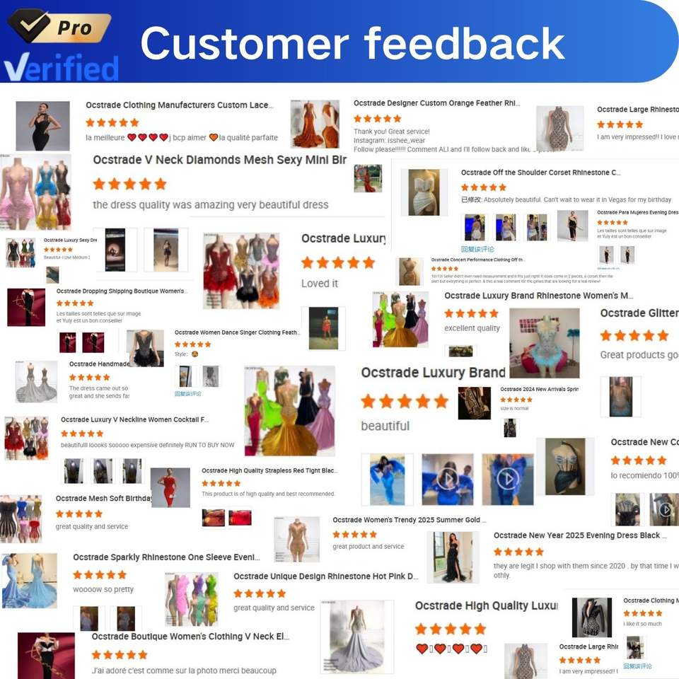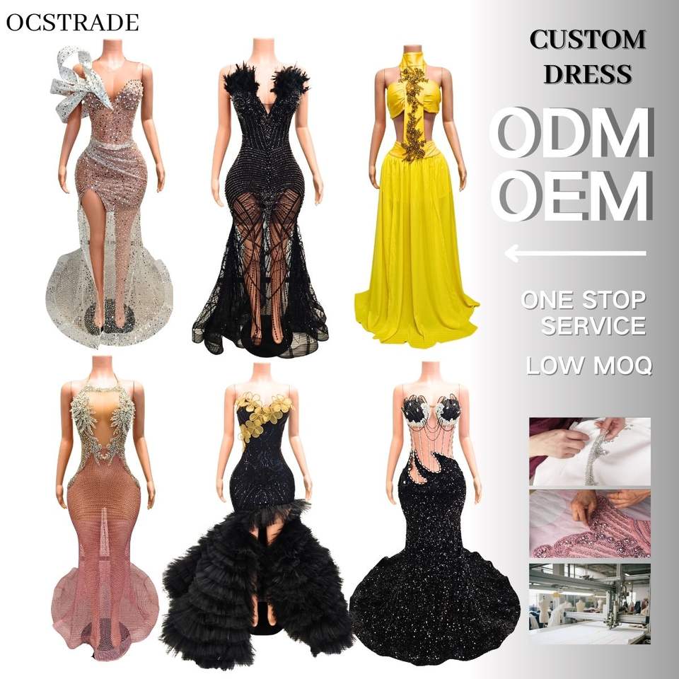 Ocstrade Fornitore Personalizzato OEM ODM, Abiti da Sera Eleganti con Strass e Diamanti per Donne, Servizio di Dropshipping