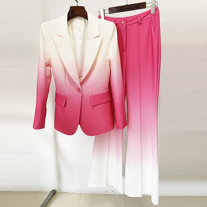 Sfilata di moda Ocstrade verde sfumato manica lunga Blazer e pantaloni 2 pezzi Set di pantaloni con un bottone giacca da donna