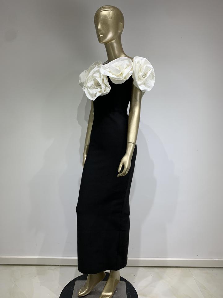 Ocstrade High Quality Luxury Long Evening Dresses White Large 3D Flowers Strapless Bodycon Elegant Para Mujeres Bandage Dress