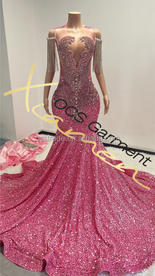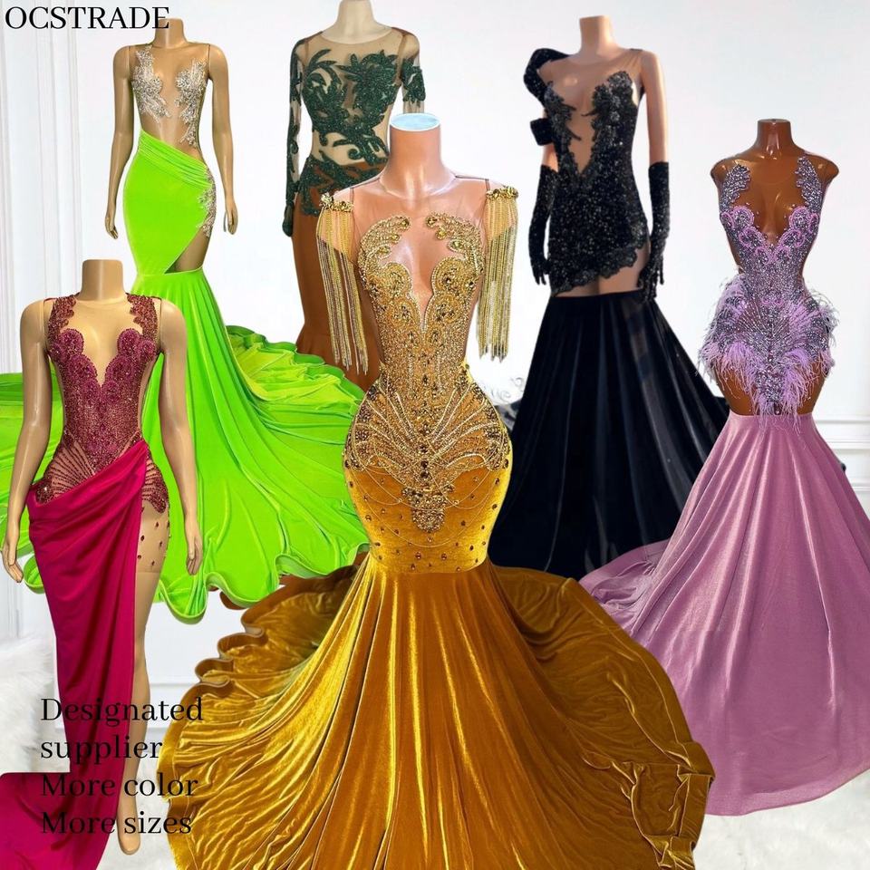 Un pezzo di Ocstrads Brand di Lusso strass Donna Maxi Prom Abiti 2023 Abiti da ballo da sera con perline pesanti abiti eleganti da ballo da donna in un sacchetto di poli.